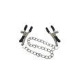 The tit vice clamp has a unique lever design that allows you to really pile on the pressure. The clamp is not spring loaded - it is the turning of the screw that applies the pressure - so you decide how much pressure to apply. Black metal finish with rubber coated flat pads, connected with a steel chain. Give them a tug and they'll hang on tight!
