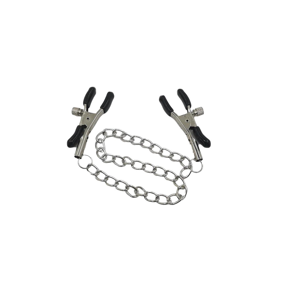 The nipple clamps have a unique design that allows for a really tight grip. The clamps do not use springs. Turning the adjustment screw determines the clamping force, so you can decide for yourself how tight you want them to be. The black outer shell and rubber nipples add a spicy touch to this naughty toy. Give them a firm tug, and they'll definitely stay in place!